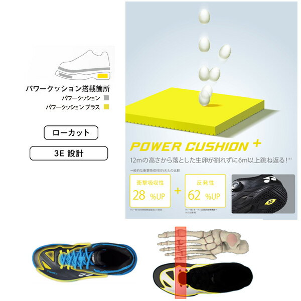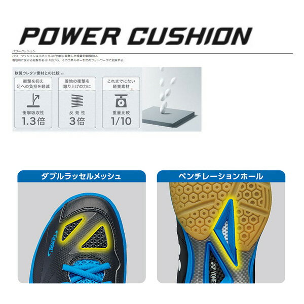 【POWER CUSHION(パワークッション)】パワークッションはヨネックスが独自に開発した軽量衝撃吸収材。