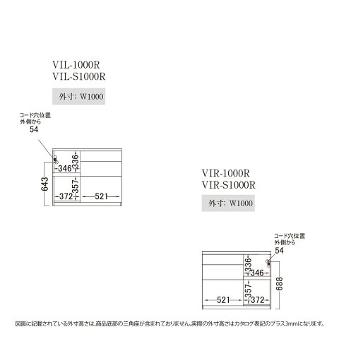 実際の高さは表記のプラス3mmになります。