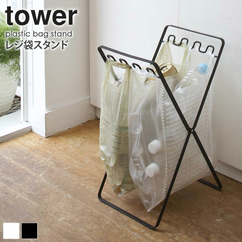 【メール便で送料無料】レジ袋ハンガー タワー / tower 山崎実業 YAMAZAKI レジ袋 スタンド ゴミ分別 収納 袋 おしゃれ ナチュラル ゴミ箱 キッチン 分別 レジ袋スタンド ダストボックス 折り畳み 折りたたみ ゴミ袋スタンド ごみ箱 ペットボトル ゴミ袋ホルダー